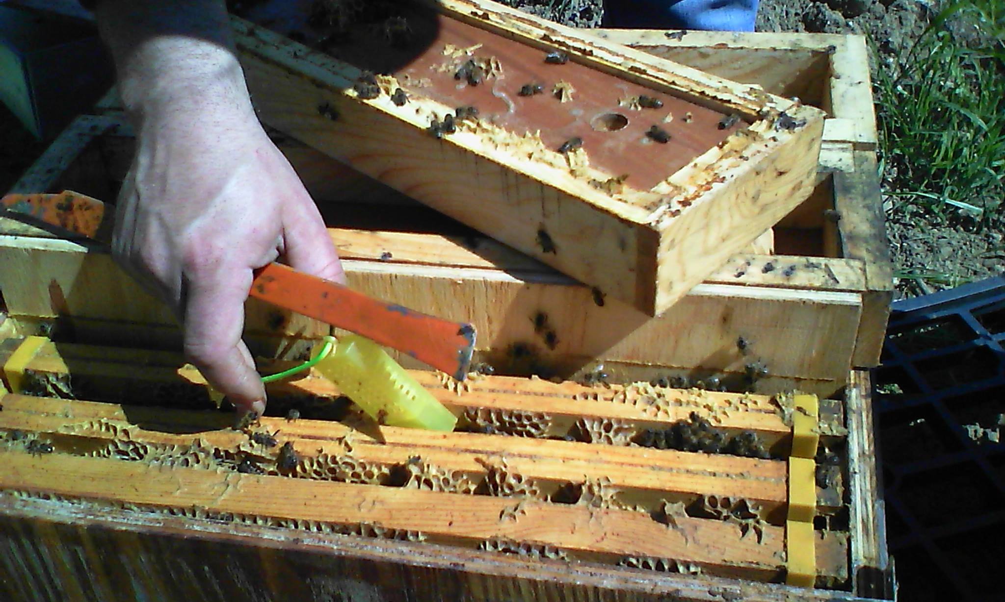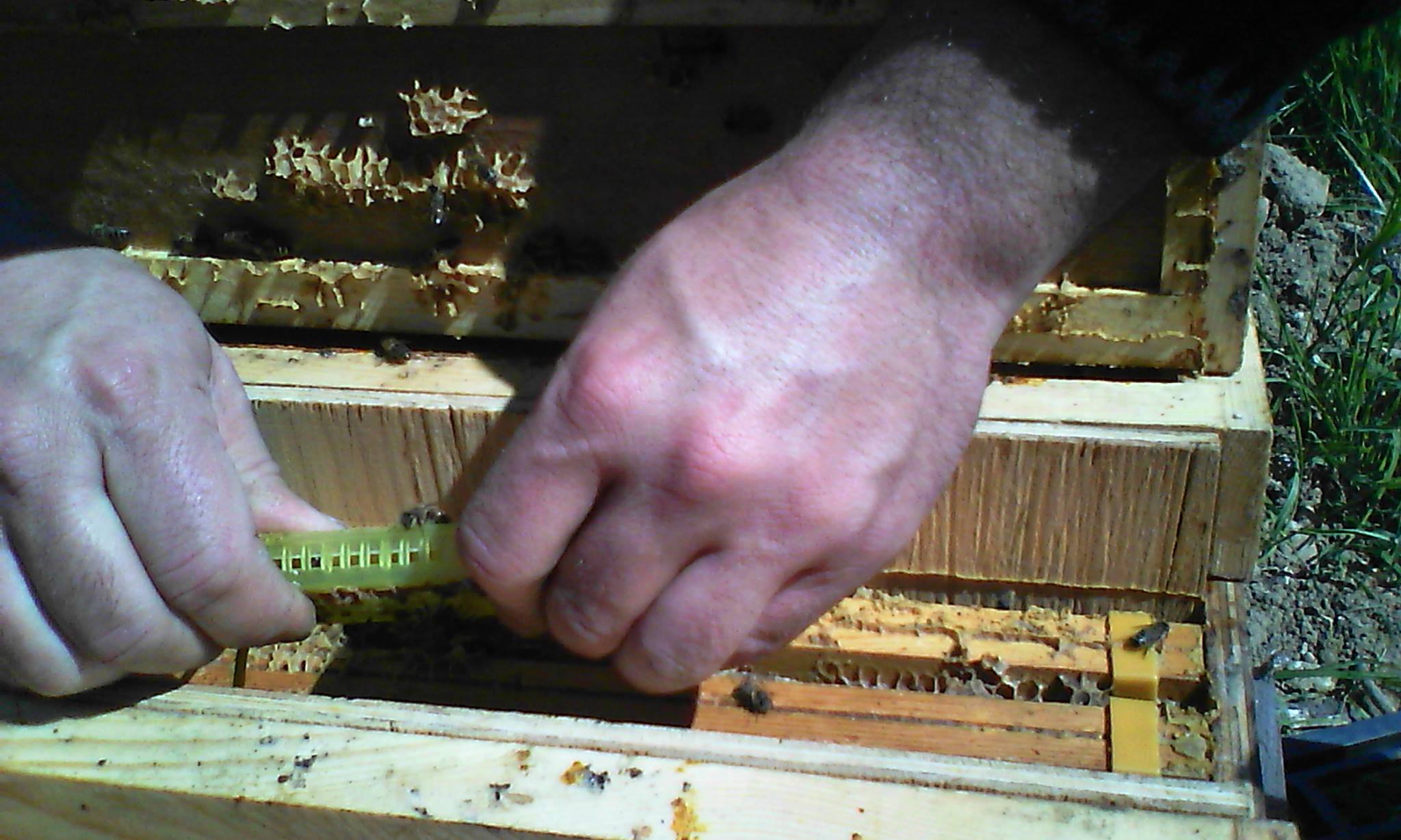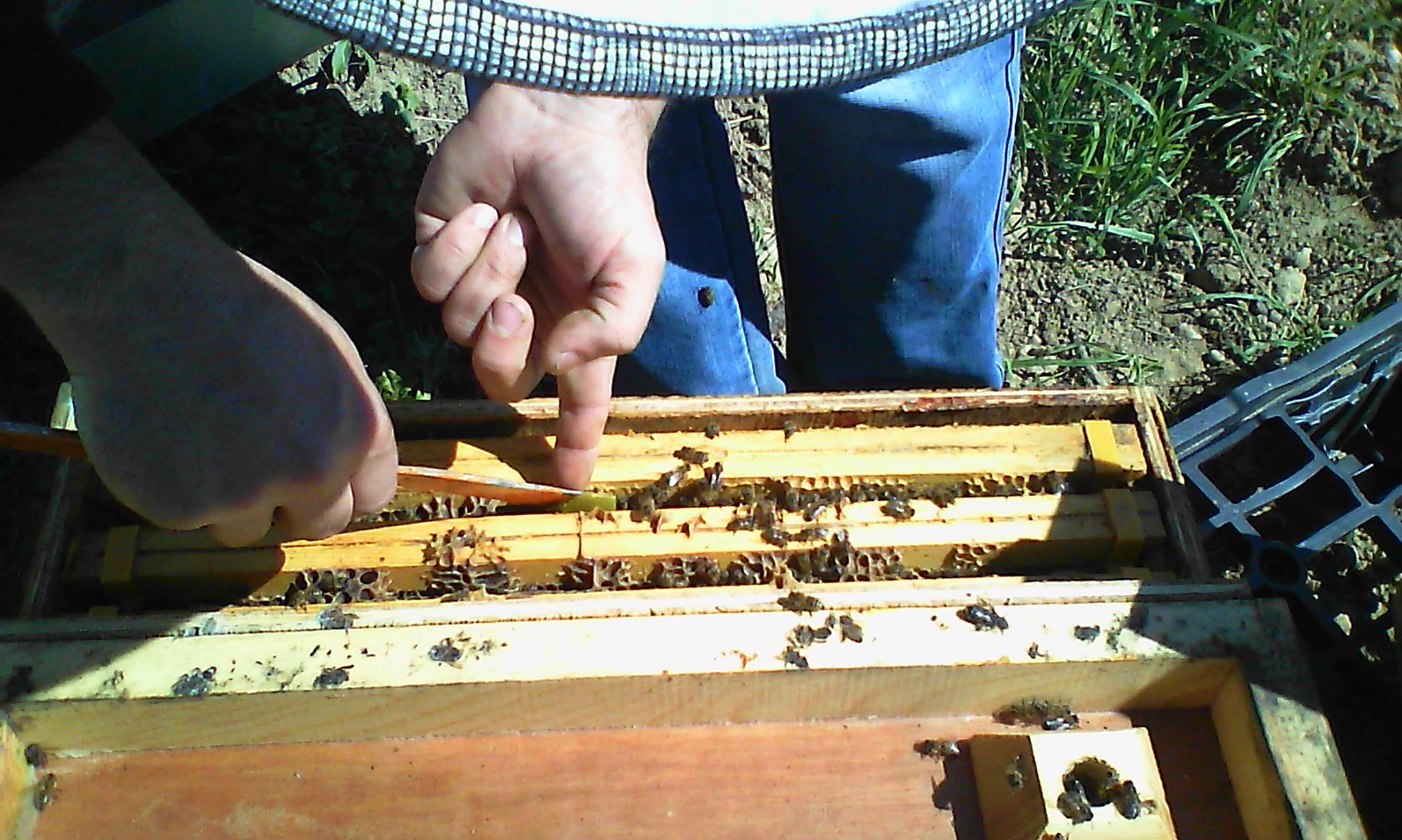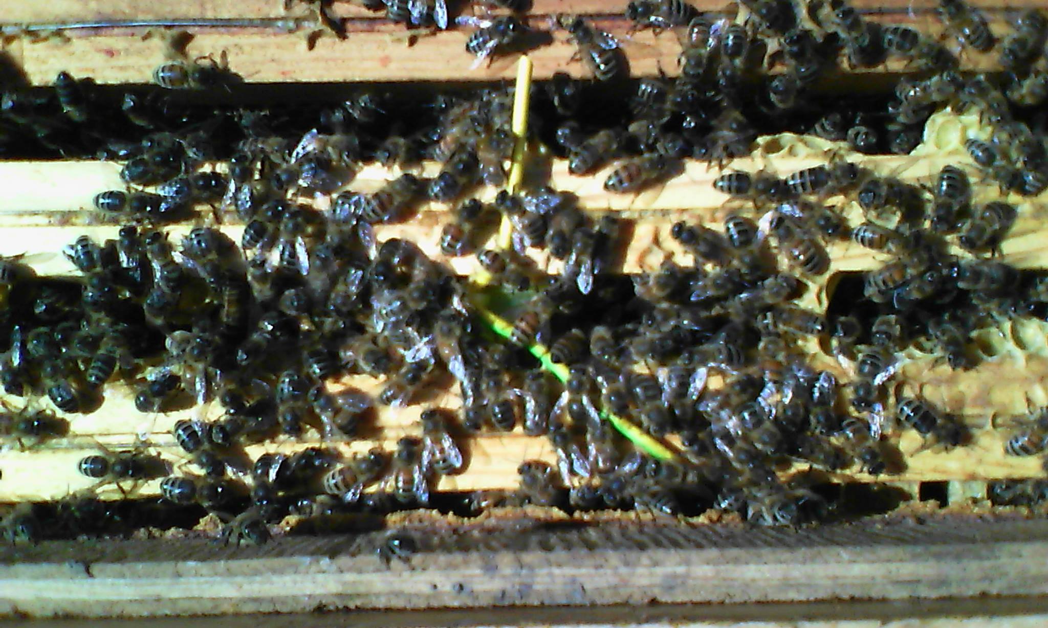 Voici donc la suite : la libération des reines, en réalité je l’ai fait Jeudi dernier. Les essaims sont pour le moment tous sur 3 cadres : 2 cadres de couvain, 1 cadre bâti pour permettre à la nouvelle reine de pondre.