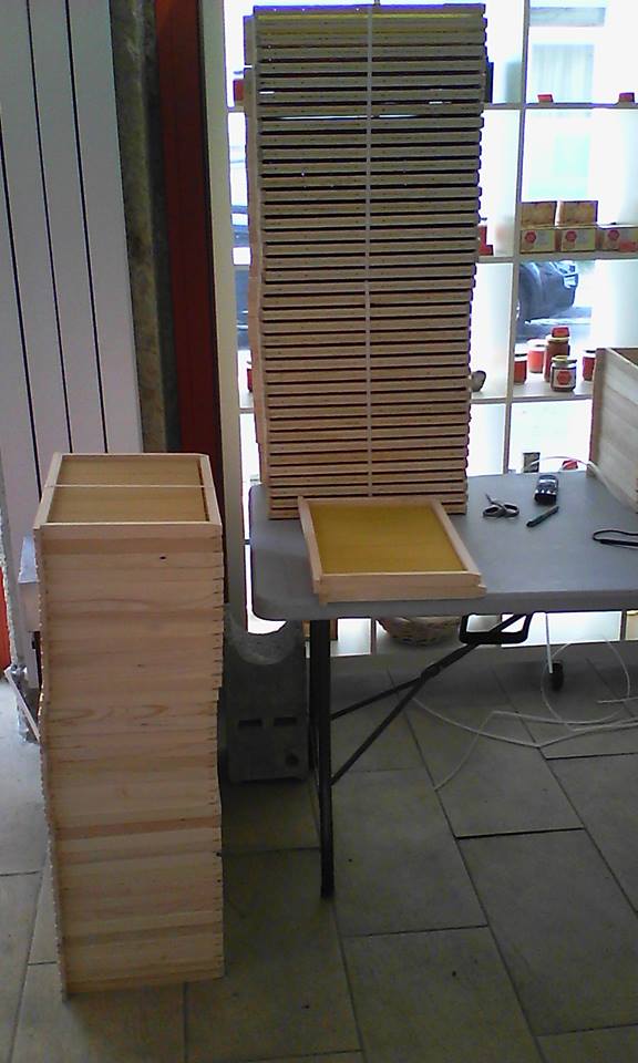 Ce matin, et je pense encore une bonne partie de l’après midi, ce sera montage de cadres en cire au magasin.