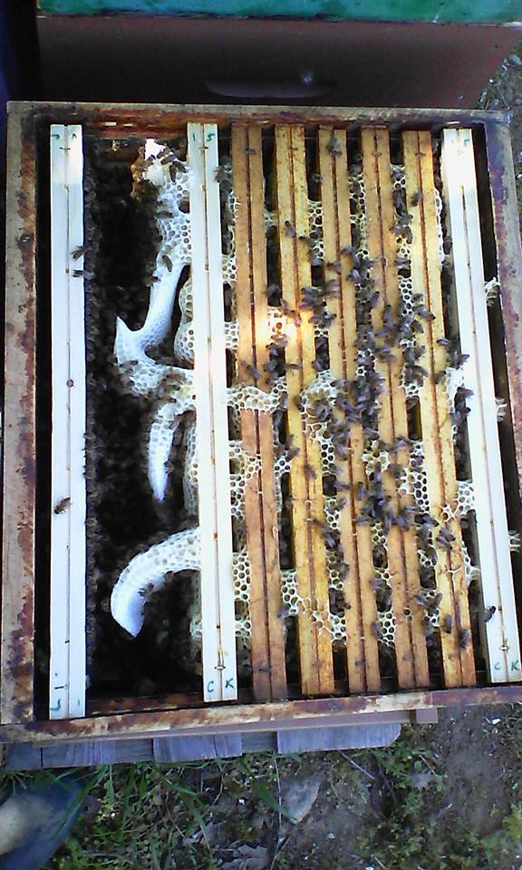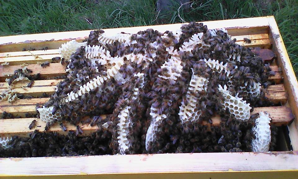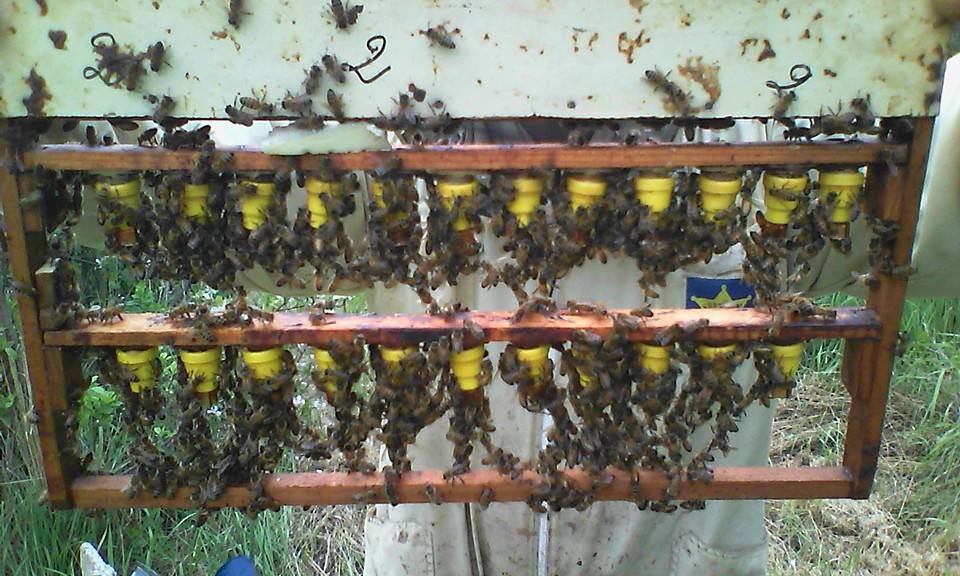Le Colza Bio (29 hectares d un seul tenant ! ) signe pour moi mon retour en grande culture depuis 11 ans et ça se passe à merveille, d’où l’importance de Communiquer avec les agriculteurs céréaliers, mais comme souvent les abeilles rentrent tellement de nectar qu‘elles tirent la cire a vitesse impressionnante, laissant alors l apiculteur face à des constructions anarchiques…. bien fait pour moi je n avais qu’à passer encore plus souvent…..L’élevage de reine va très bien également j ai fais de nouveaux essaims avec des ruches ayant des reines de 2 ans ou trop en retard par rapport aux autres, une reine a éclo dans ma main ! Et encore tellement de choses a partager !!!! J’ai filmé l’essaimage d’une ruche et sa récupération, reste a monter ces trois films en un pour en faire document intéressant!!