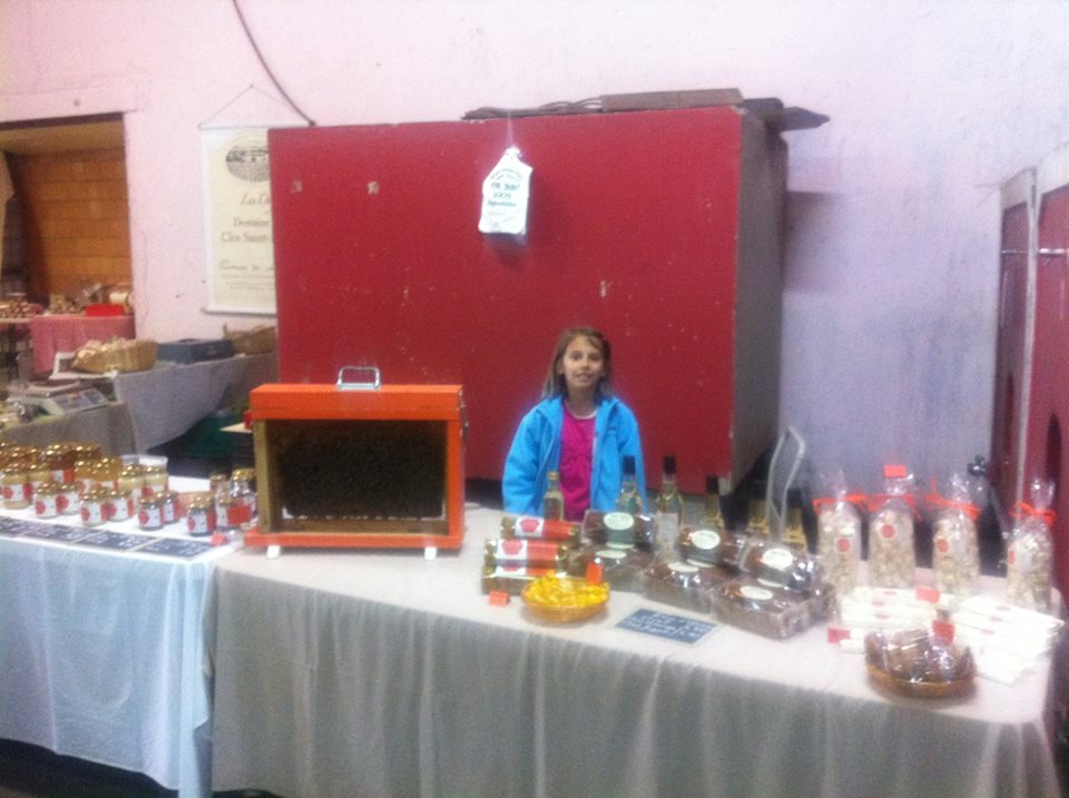 Avec Lisa ma jeune vendeuse 🙂 nous vous donnons rendez vous dans ce lieu pour admirer de près la première ruche vivante de l’année 2015!!!!