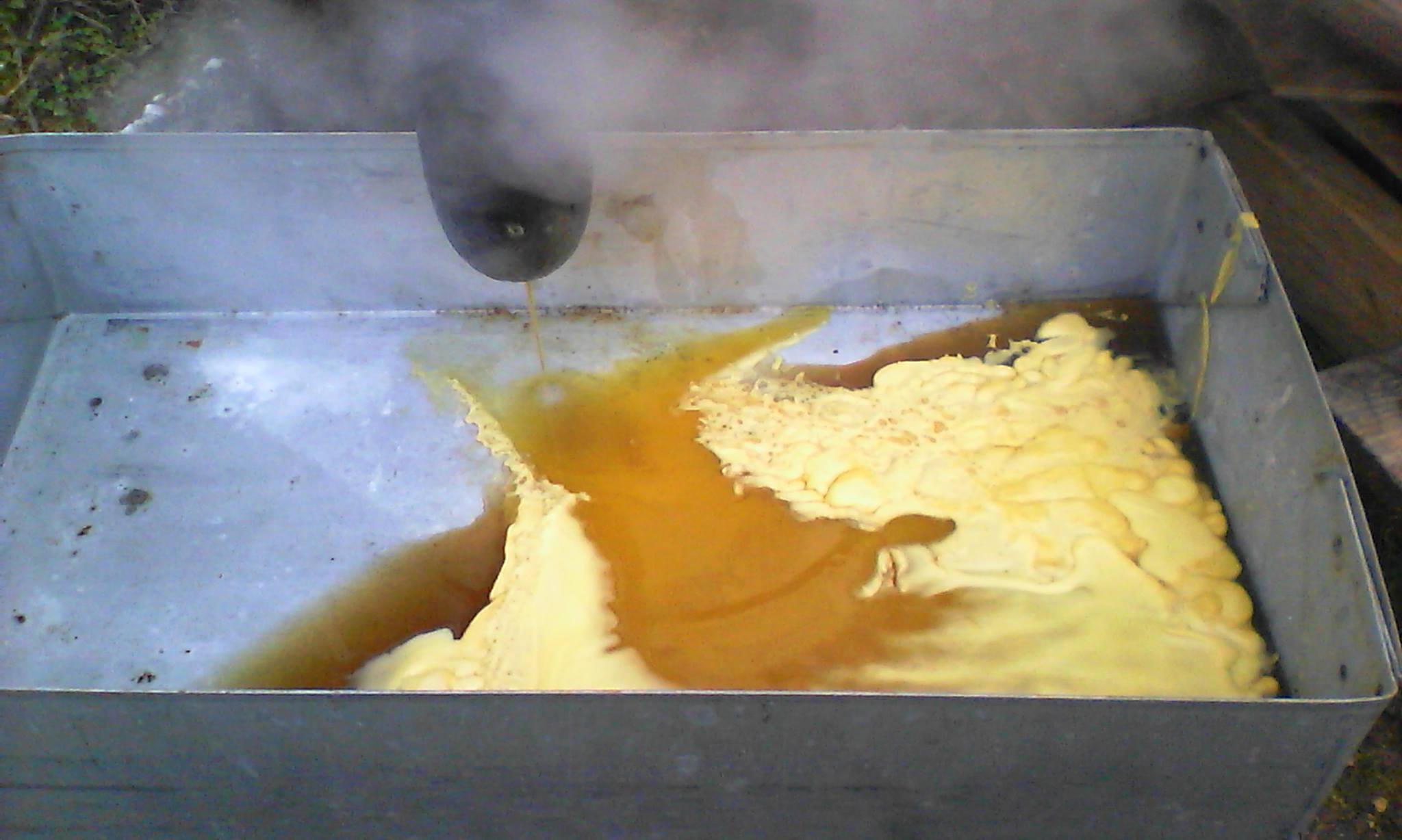 Mardi nettoyage des ruches mortes pendant l’hiver, fonte de la cire d’opercule restant à la miellerie et désinfection des corps de ruche pour accueillir de nouvelles pensionnaires cette année !!