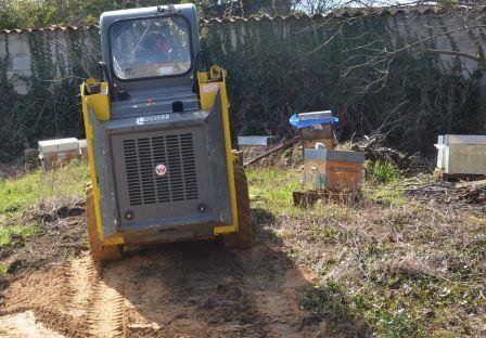 Mardi et jeudi gros nettoyage de printemps pour le début de la saison qui devrait pointer son nez d’ici 15 à 20 jours avec les premiers essaims et peut être les première fleurs…..Ce fut l’occasion pour moi de refaire du Bob !! toujours aussi plaisant….mais terrasser un rucher nécessite un air frais pour ne pas susciter l’excitation des gardiennes à cause des vibrations de l’engin….